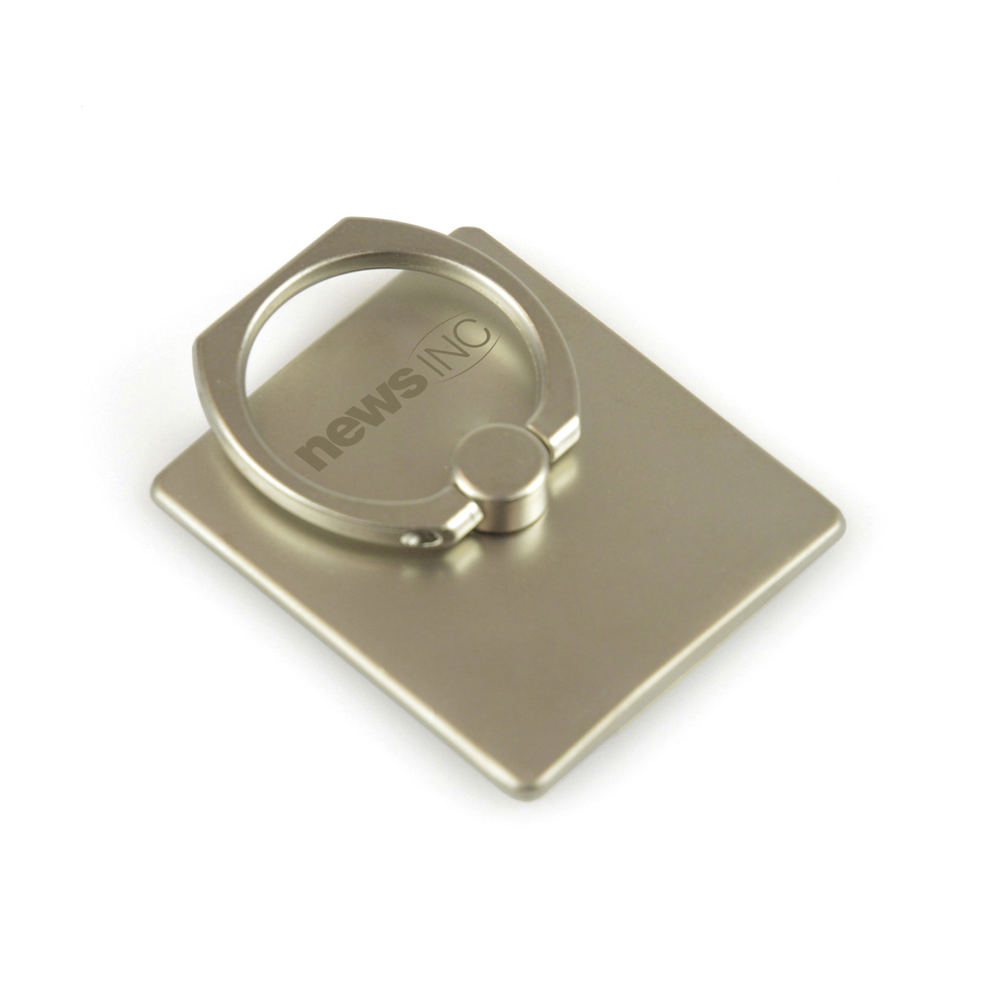Metal ring that attaches to the back of your mobile phone to act as a stand or to use as a holder for added grip when carrying. Available in matt silver finish only.