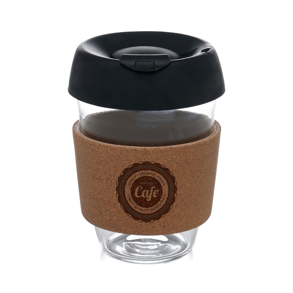 The Rivo 350ml Glass Cup is a sleek and practical promotional item that combines a modern look with everyday usability. Made from durable borosilicate glass, its fitted with a black silicone lid for a secure sip and a cork hand holder for a comfortable grip. Designed for hot or cold drinks, the Rivo is a reusable alternative to disposable cups and offers a generous branding area to showcase your company logo or design. Its refined mix of glass, cork, and silicone makes it an appealing choice for the hospitality sector, offices, events, and corporate gifting. This is a cup that will be kept, reused, and noticed a promotional giveaway that carries your brand with style.